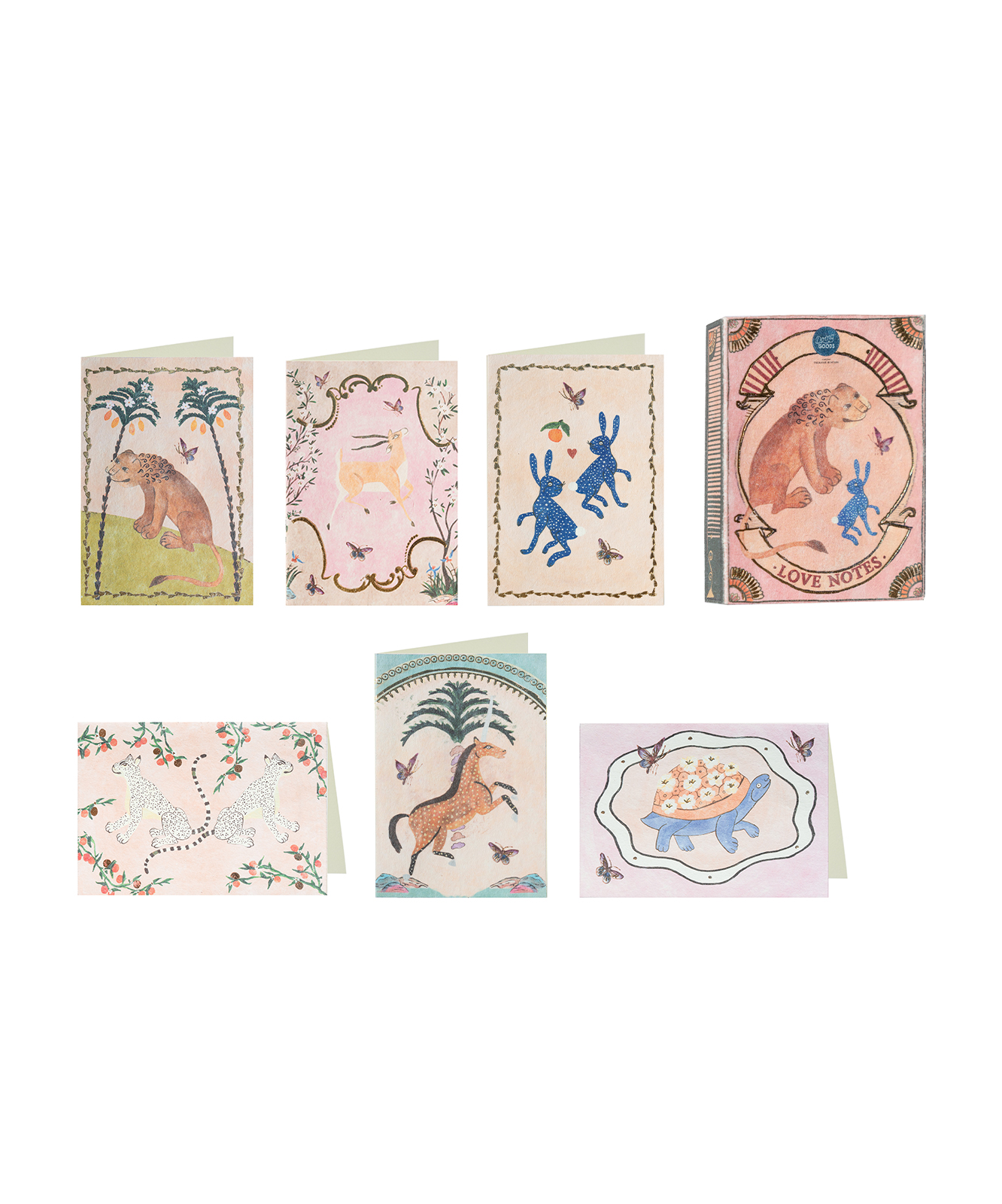 Dans cette petite boite de la taille d'une boite d'allumette se cache un jeu de 6 cartes doubles avec ses enveloppes assorties en papier recyclé.