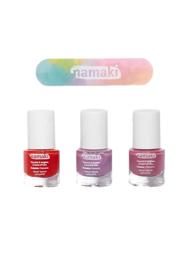Un vernis à ongles à base d'eau et pelable spécialement conçu pour les enfants: •Facile à appliquer : le petit pinceau est spécialement conçu pour les ongles des enfants. •Séchage rapide : en quelques minutes seulement, les enfants pourront reprendre leurs activités. •Résistant à l’eau : contrairement à certains vernis à l’eau, ce vernis résiste aux lavages de mains ou si les doigts sont mis à la bouche. •Pelable : fini les tracas du dissolvant, ce vernis s’enlève comme un autocollant. •Respectueux de la santé des enfants : une formule à base d’eau exclut les ingrédients nocifs tels que parabène, formaldéhyde, phtalate, toluène et camphre. De plus, il ne contient ni solvant ni odeur désagréable.