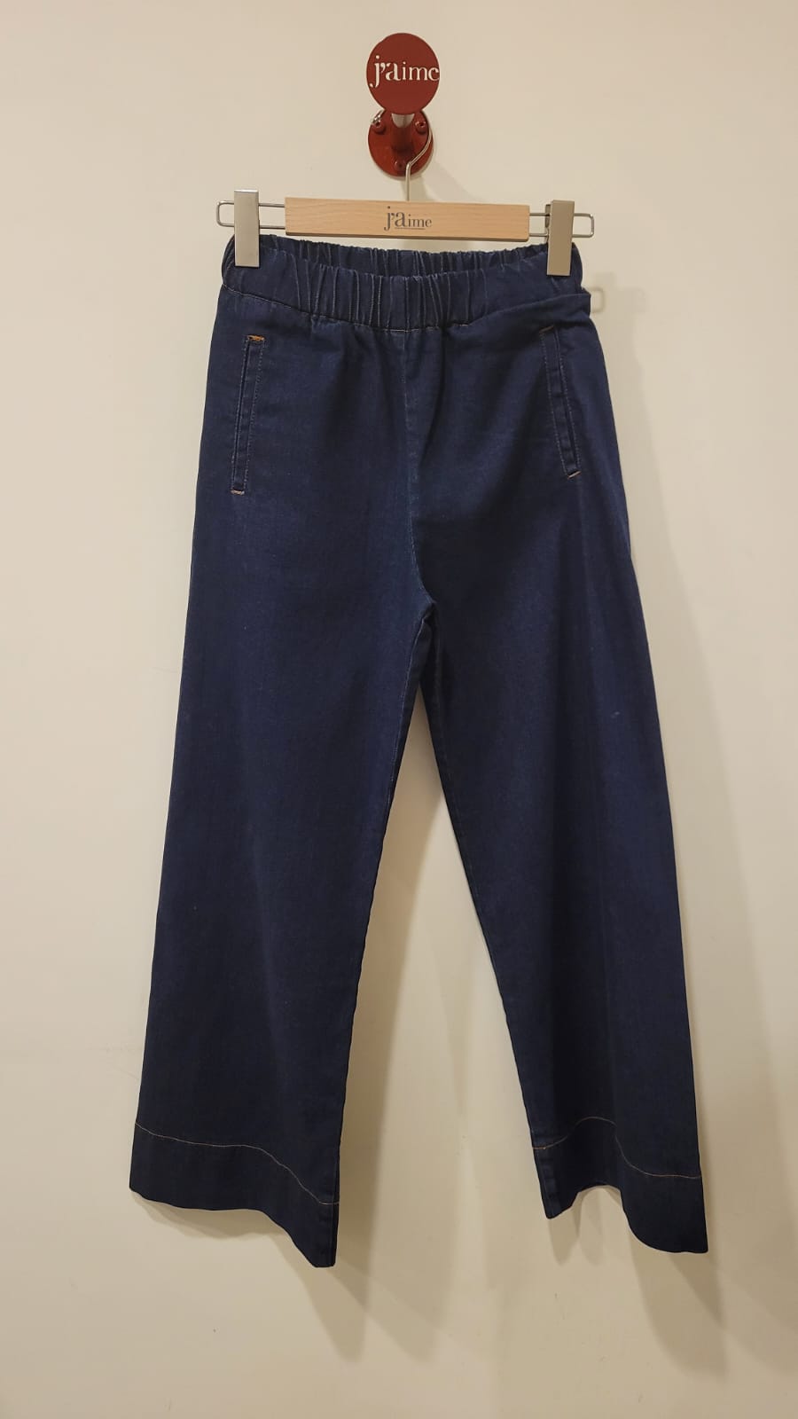 Pantalon large en jean de la collection automne-hiver HOD PARIS. - Taille élastiquée - Jambe large - 2 poches passepoilées sur les côtés - 1 poche sur le dos