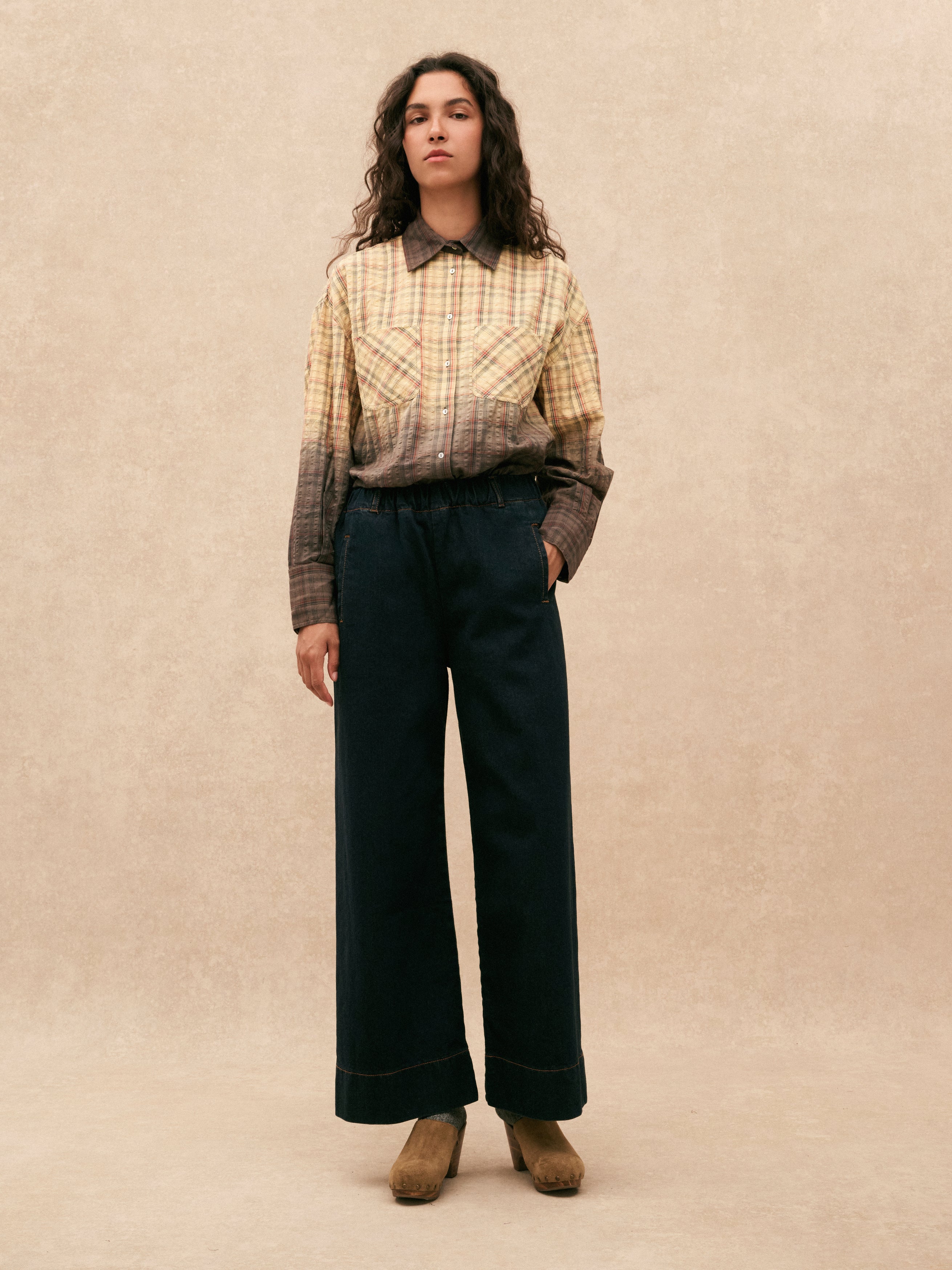 Jim est le petit cousin du jean Jimmy. Jim est entièrement élastique à la taille, ce qui le rend très confortable. Sa jambe est droite et large. Il possède deux poches plaquées "à l'italienne". Des passants au niveau de la taille ont été rajoutés pour pouvoir mettre une ceinture. •Jambes larges •Taille élastique •Tissu Italien •Poches italiennes plaquées •Une poche plaquée à l'arrière