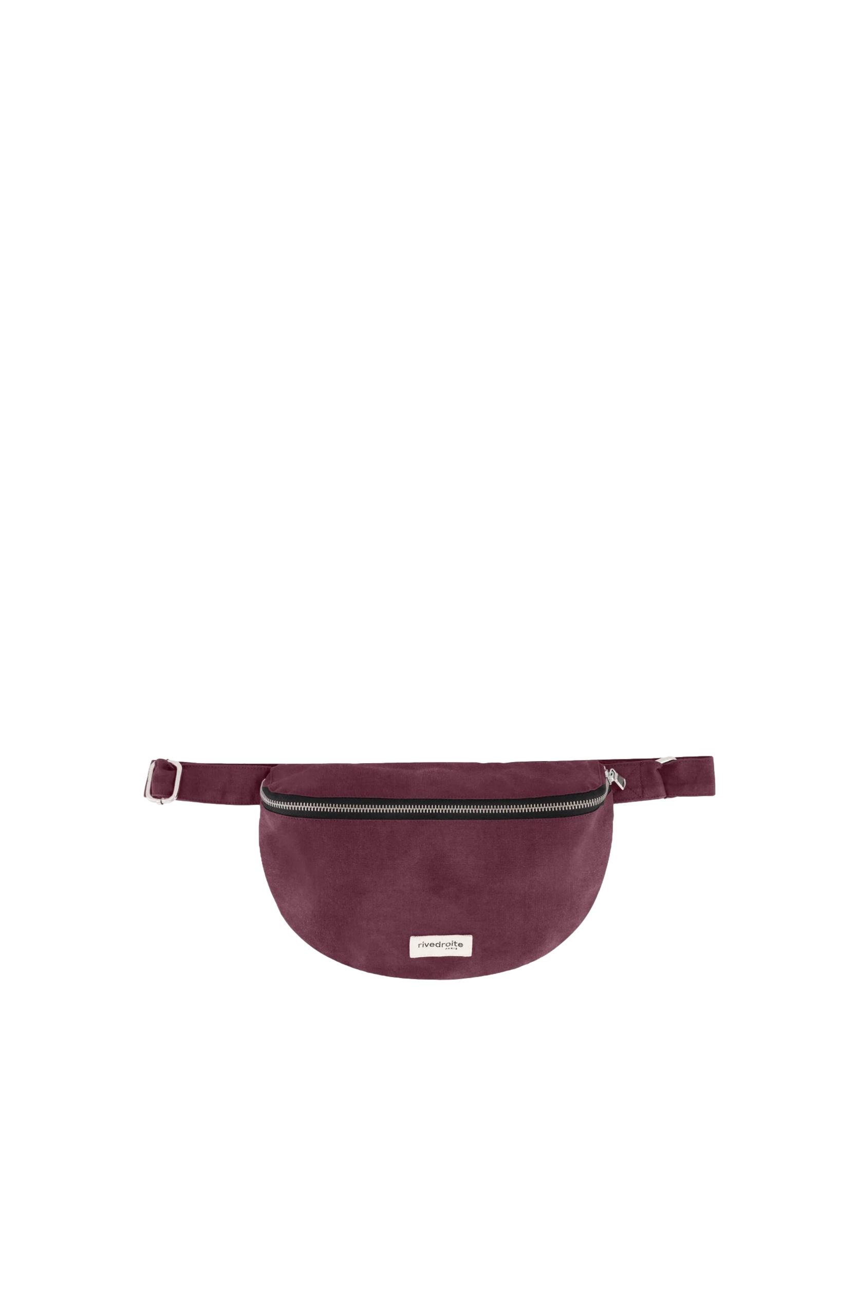 Banane en coton recyclé ciré. Elle est déperlante. Sa doublure intérieure noire est issue de chutes de tissus de l'industrie textile. Elle se ferme par un zip.
