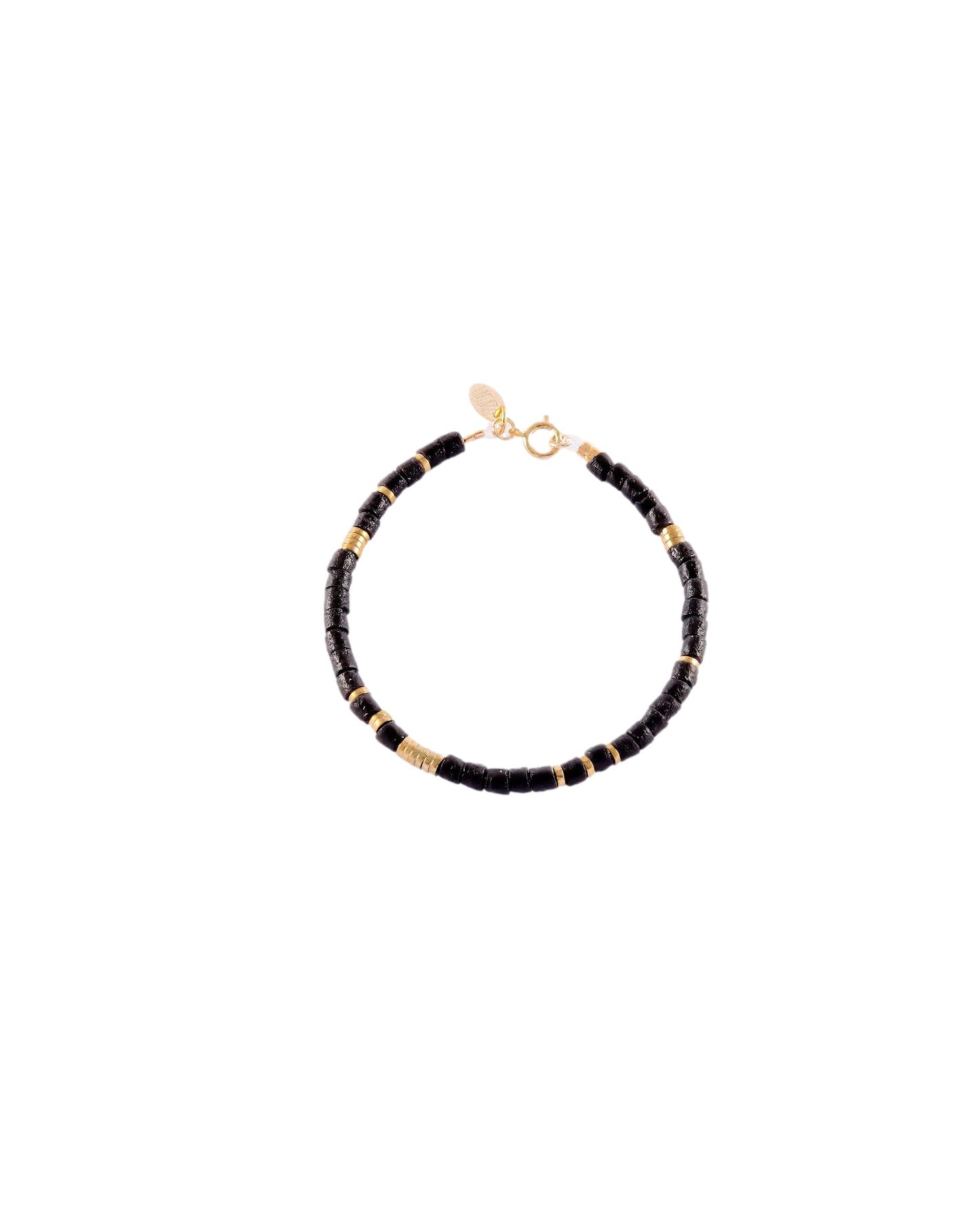 Le bracelet Brooklyn est une création exclusive Maison Mönik. • Bracelet en perles en verre recyclé et perles en hématite 3 mm • Fermoir classique Les perles recyclées du Ghana sont artisanales. Les couleurs peuvent variées et leurs formes irrégulières.