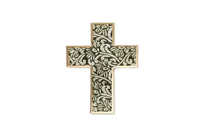Croix à suspendre avec jolis motifs inspirés des block-print indien.