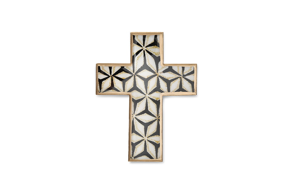 Croix à suspendre avec jolis motifs inspirés des block-print indien.