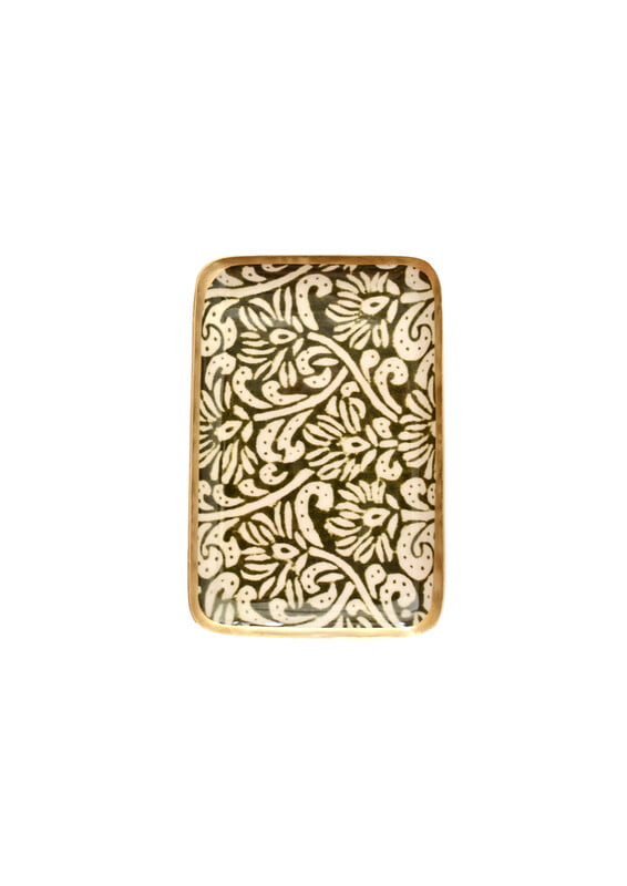 100 % aluminium émaillé. Finition bordure dorée à la main