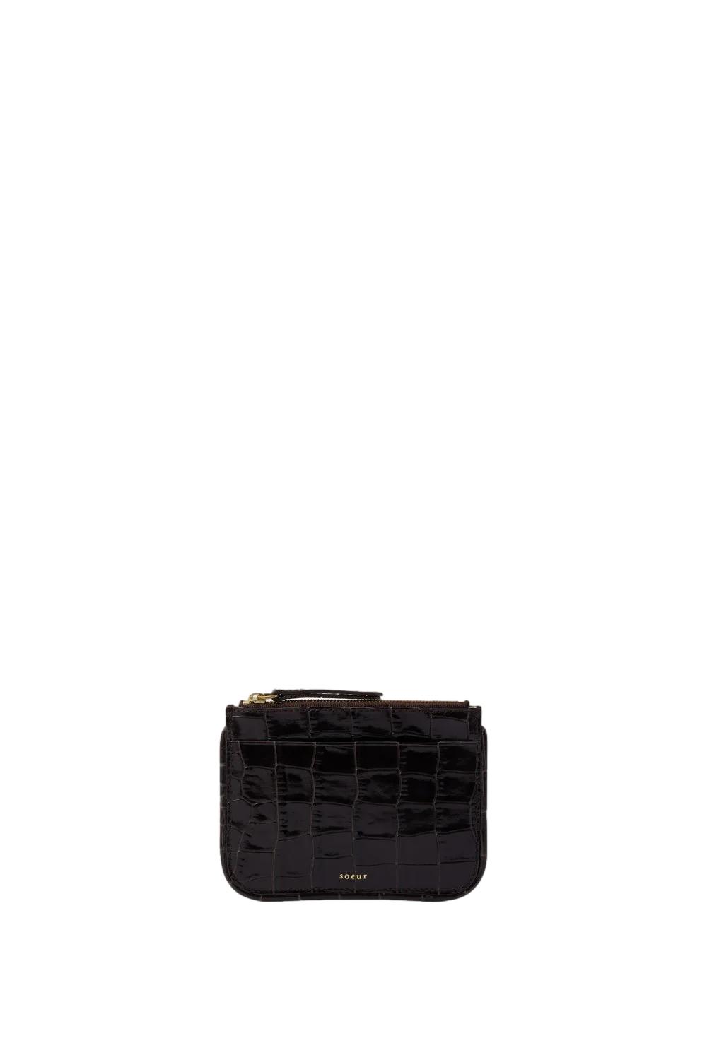 Porte-monnaie Arsène en cuir effet croco •Porte-monnaie zippé en cuir croco embossé marron foncé •Un compartiment zippé pour la monnaie •Cuir LWG (Leather Working Group)