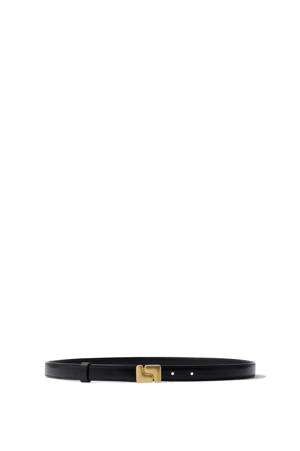 Ceinture Ninon mini en cuir glacé •Ceinture en cuir glacé noir •Largeur 2cm •Fermoir monogramme "S" en métal doré •Cuir LWG (Leather Working Group)