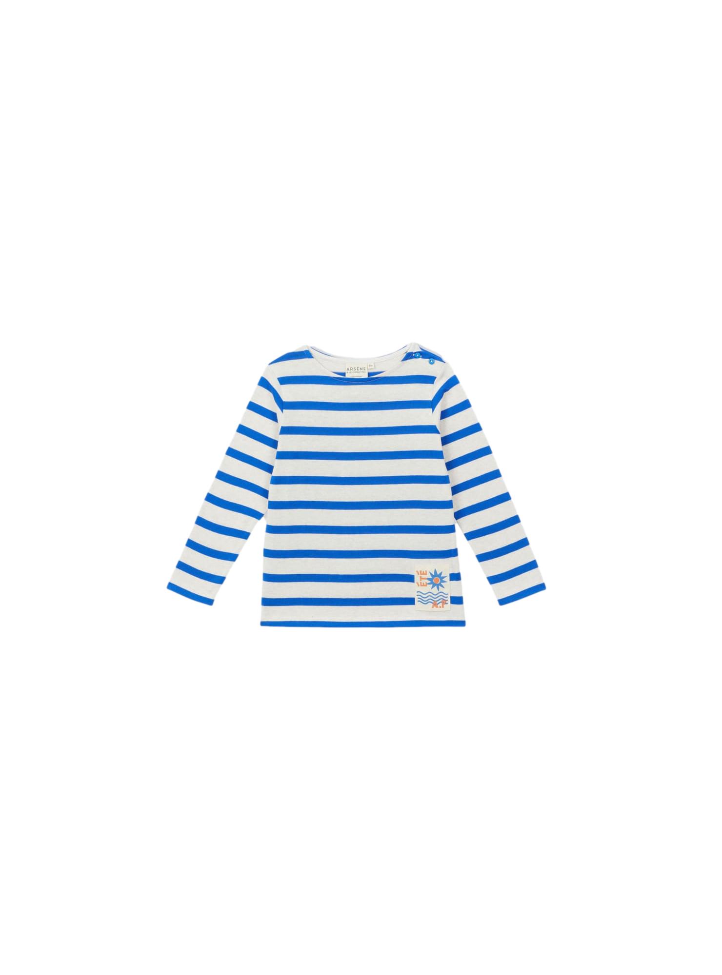 Marinière bleu electric • Jersey rayé en coton organique certifié bio • Forme droite • Col rond • Ouverture boutonnée à l'épaule