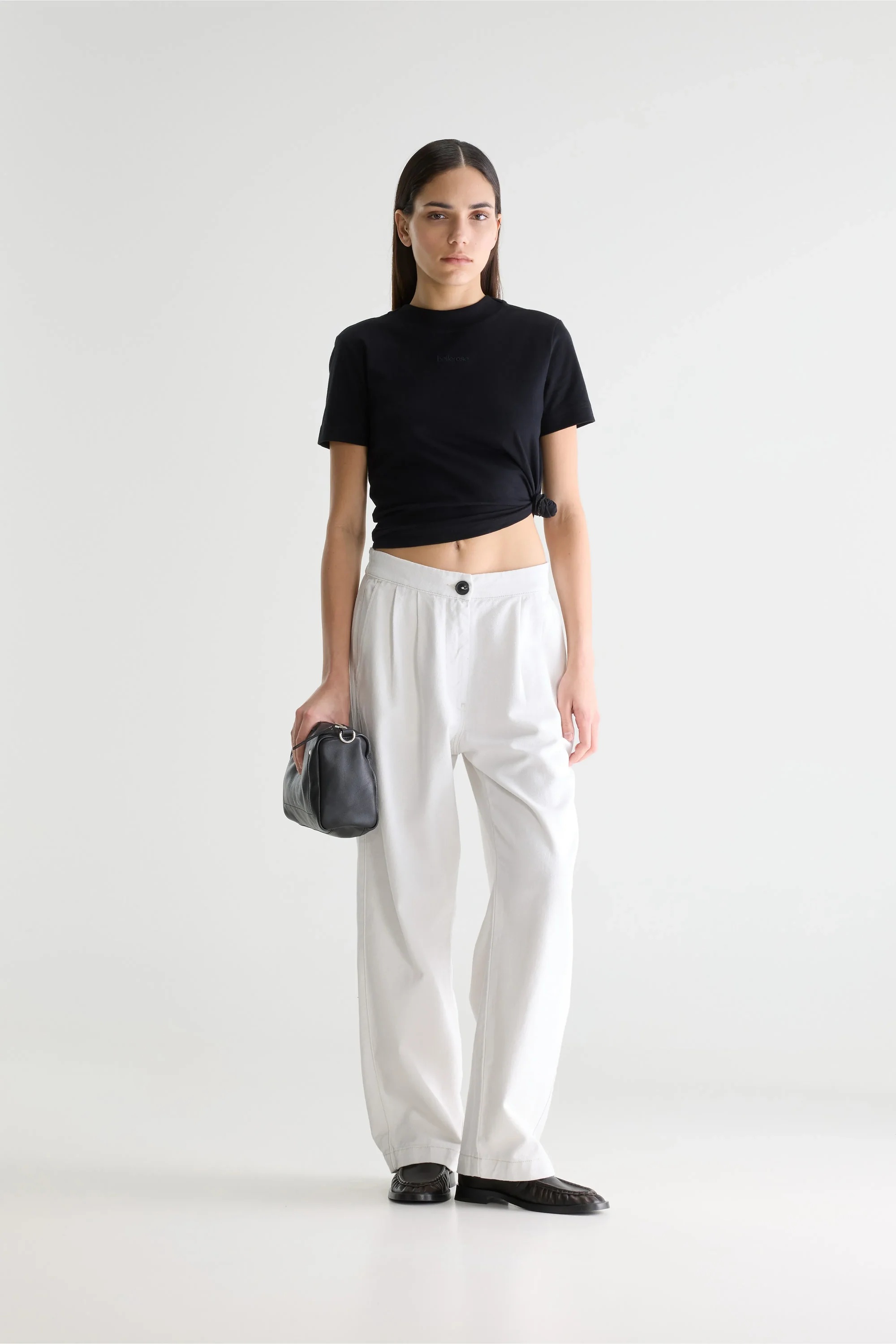 Pantalon droit à taille élastiquée au dos, confectionné en twill blanc cassé. • Coupe standard • Jambes droites • Taille élastiquée à l'arrière • Twill sans élasticité • Poche sur la couture latérale • Poches passepoilées boutonnées à l'arrière • Fermeture zippée