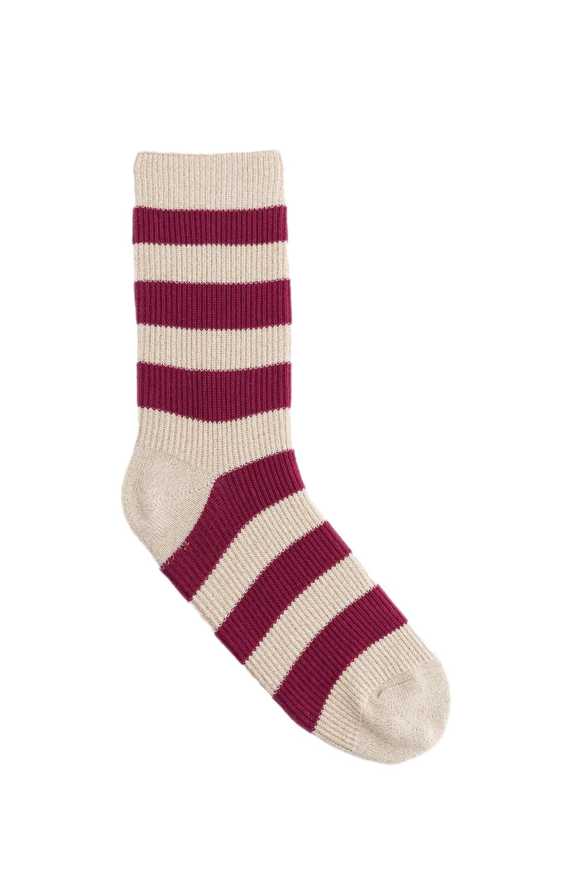 Chaussettes rayées beige doré et bordeaux