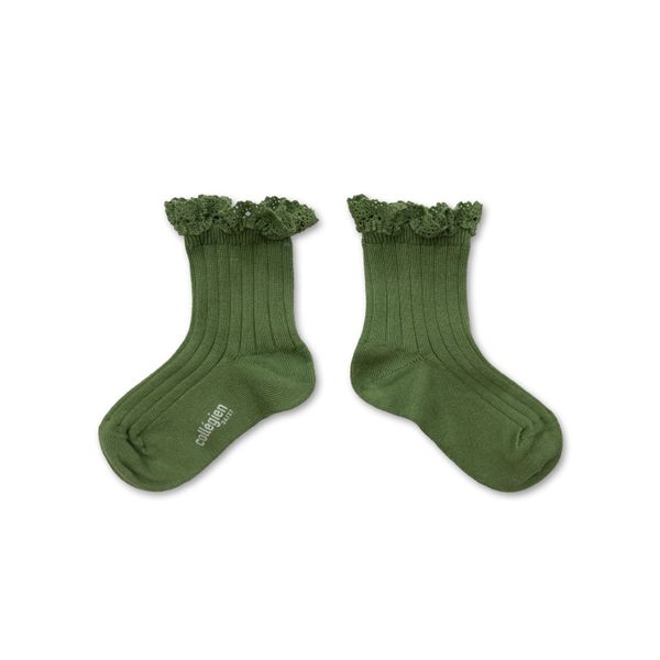 Chaussettes courtes à côtes avec dentelle - Avocat