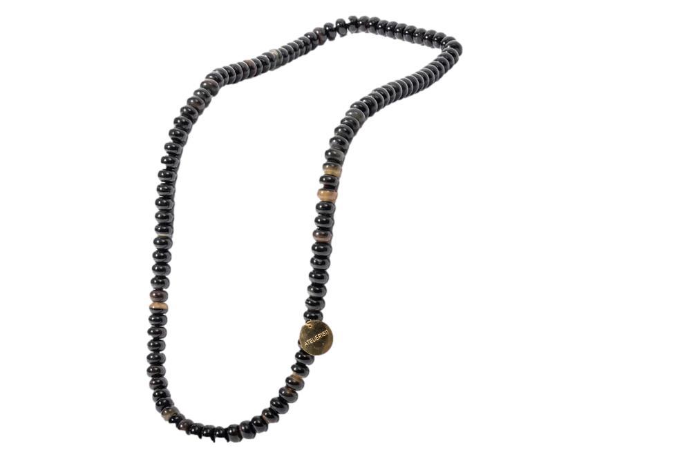 Le sautoir SCARLETT est composé de perles en corne naturelle montées sur un lien souple. Chaque perle, façonnée artisanalement, révèle des nuances singulières, entre transparence et marbrures naturelles. Un médaillon ATELIER1811 en laiton doré vient signer ce bijou fluide Polyvalent, SCARLETT se porte au choix en sautoir long, en double tour ou superposé à d’autres créations ATELIER1811 pour un style affirmé et raffiné.