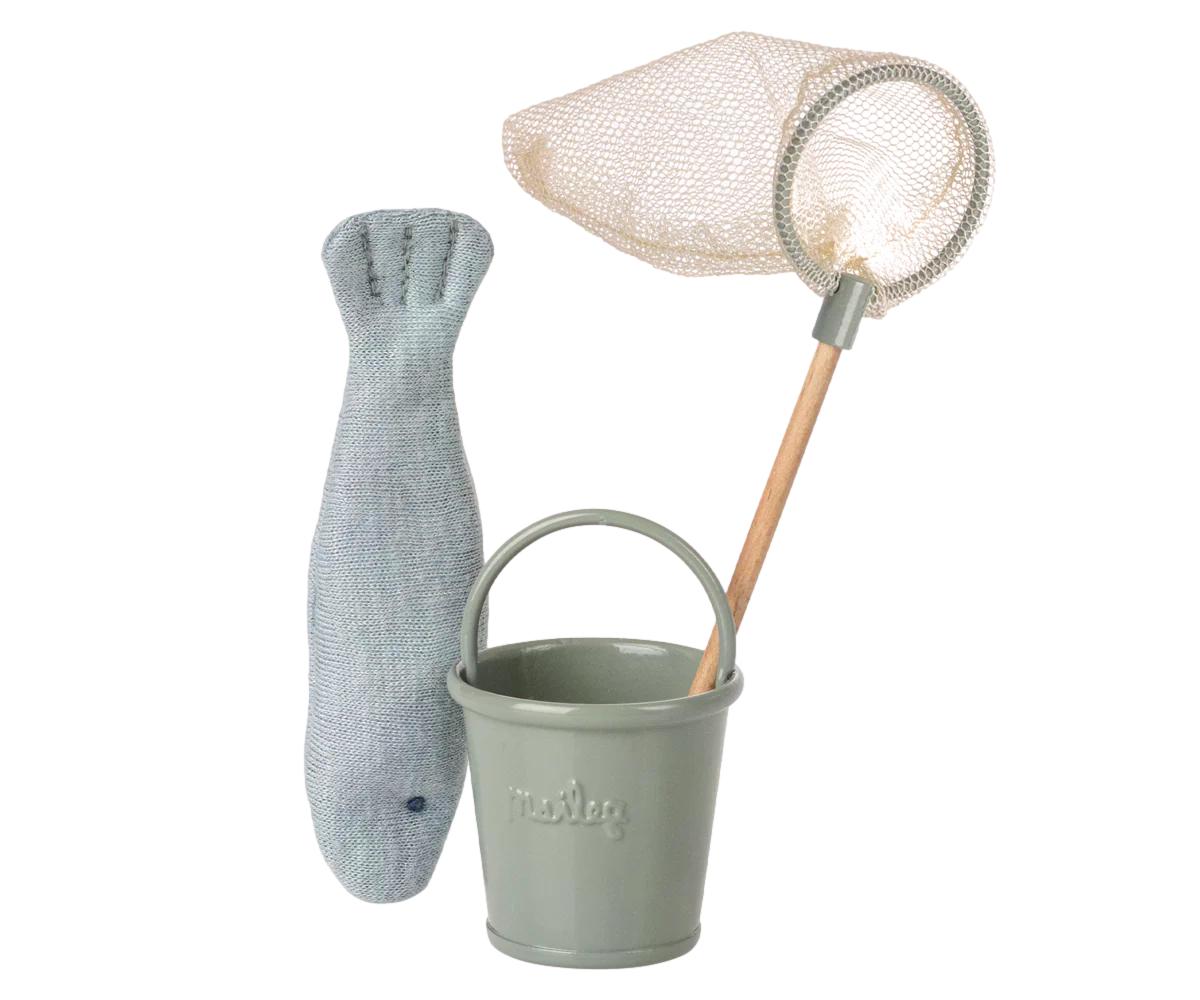 Ce kit de pêche est un accessoire idéal pour que la famille souris puisse inventer de nouvelles histoires. • Comprend un filet de pêche, des poissons et un seau pour rapporter la pêche à la maison